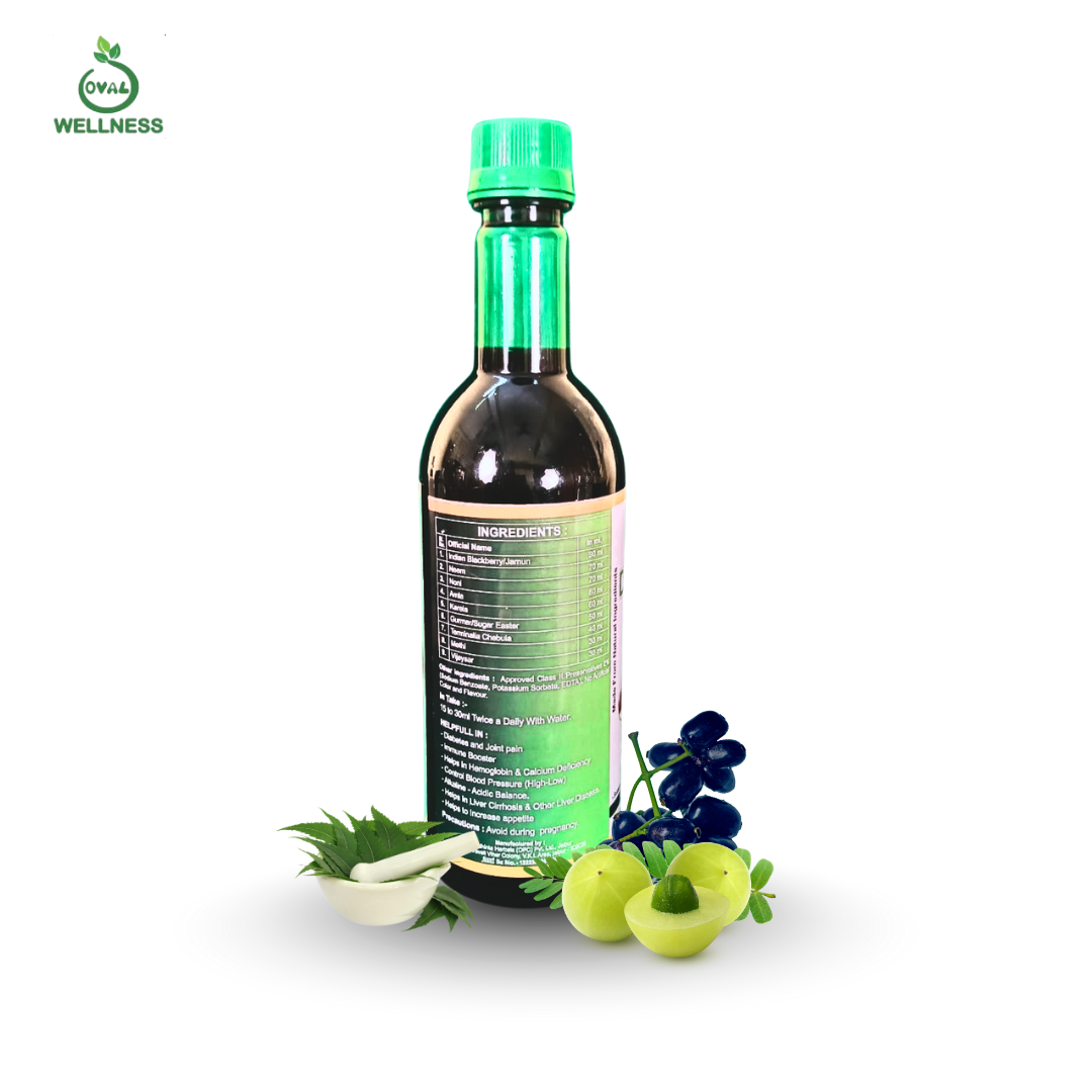 Oval Wellness Diabetic syrup consists of various herbs like Jamun, Amla, Neem, Karela, Noni, Methi which give it unique properties and make it a healing syrup. It is a combination of herbs that are rich in vitamins which enhances a healthy body and also helps treat common digestive problems.
